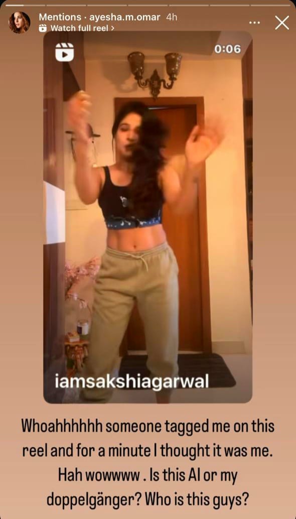 இவை அனைத்தும் சாக்ஷி தனது இன்ஸ்டாகிராமில் ஒரு ரீல் பகிர்ந்தபோது ஆரம்பித்தது, அதில் அவரது சிறந்த ஆளுமை மற்றும் ஃபேஷன் சென்ஸ் வெளிப்படுத்தப்பட்டது. இதைக் கண்ட ஆயிஷா உமரின் ரசிகர்கள் இரண்டு நடிகைகளின் ஒரே மாதிரியான தோற்றத்தை வேகமாக கவனிக்க ஆரம்பித்ததால், கருத்து பகுதி ஆயிஷாவை குறித்த குறிப்புகளாலும் ஒப்பீடுகளாலும் நிரம்பியது. இவ்வளவு வரவேற்பை ஆயிஷா உமரின் இன்ஸ்டாகிராம் கணக்கை அவரது ரசிகர்கள் டேக் செய்ததால்,அவரின் கவனத்திற்கும் வந்தது.
